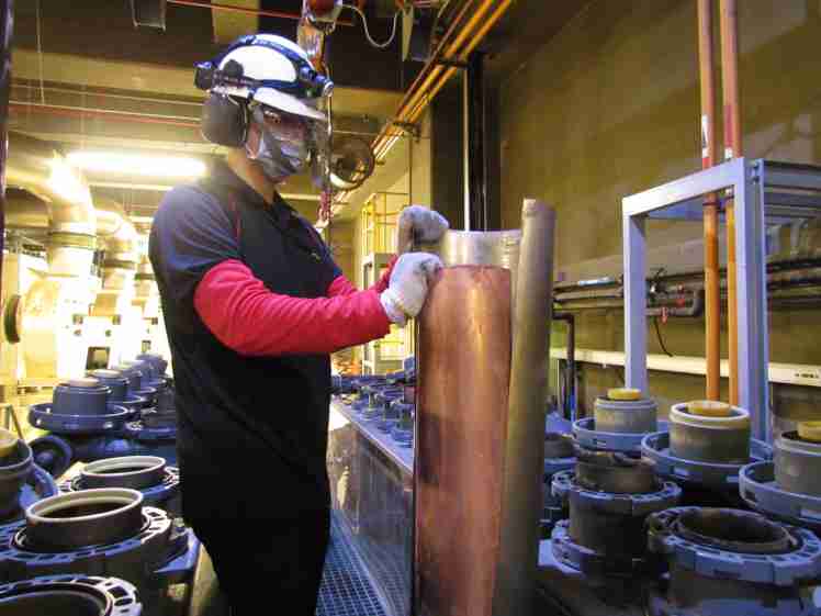 红龙扑克将废弃物转化成有效的工业或民生原物料,,图为废铜液淬炼后再制成纯度极高的铜管